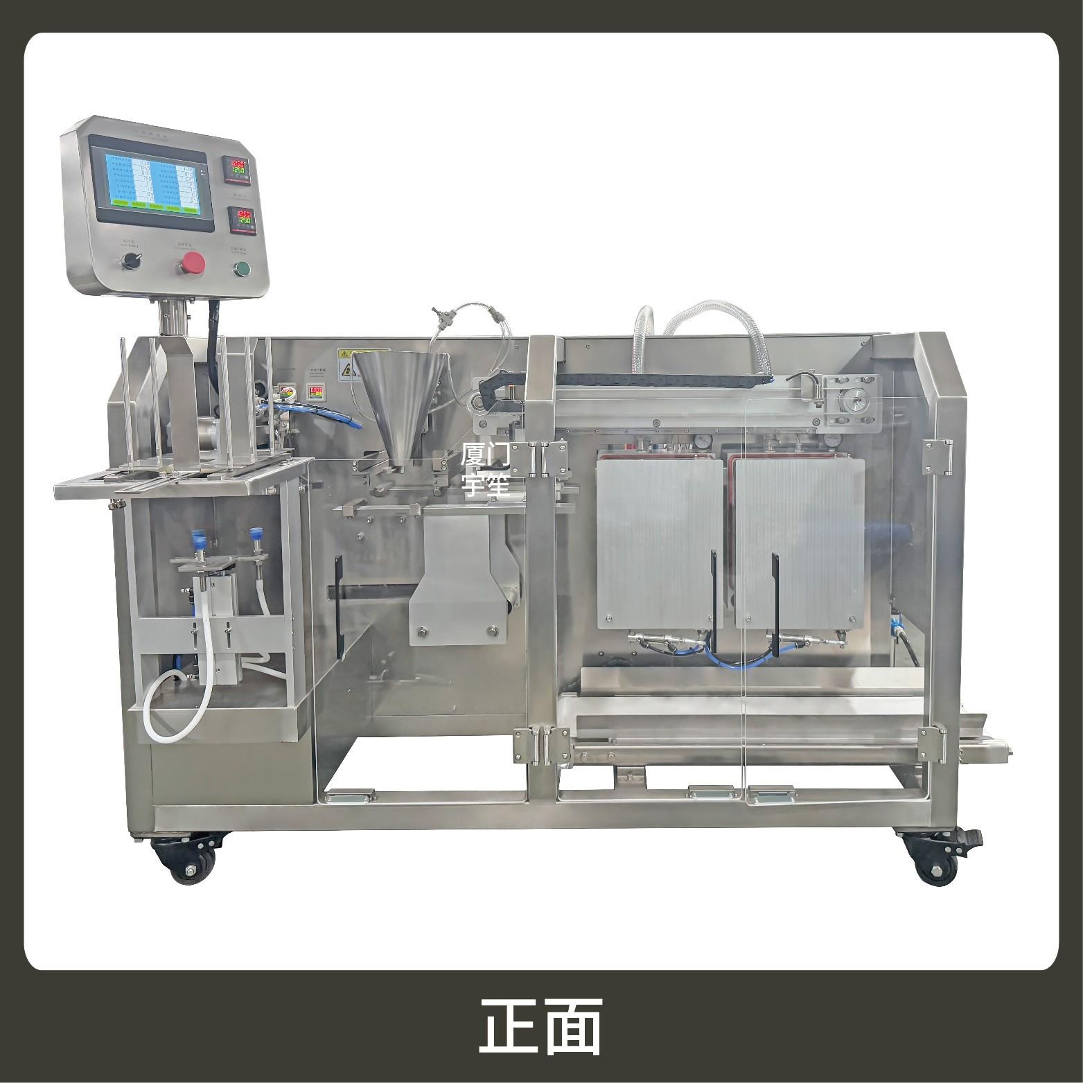 2、包裝流程全自動(dòng),可抽真空(真空度可達(dá)到-0.1Mpa)??筛鶕?jù)充填物料的性質(zhì)選配不同的下料結(jié)構(gòu)。